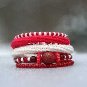 boncuklu ve tunus işi örgü ile yapılmış tel bilezik modeli