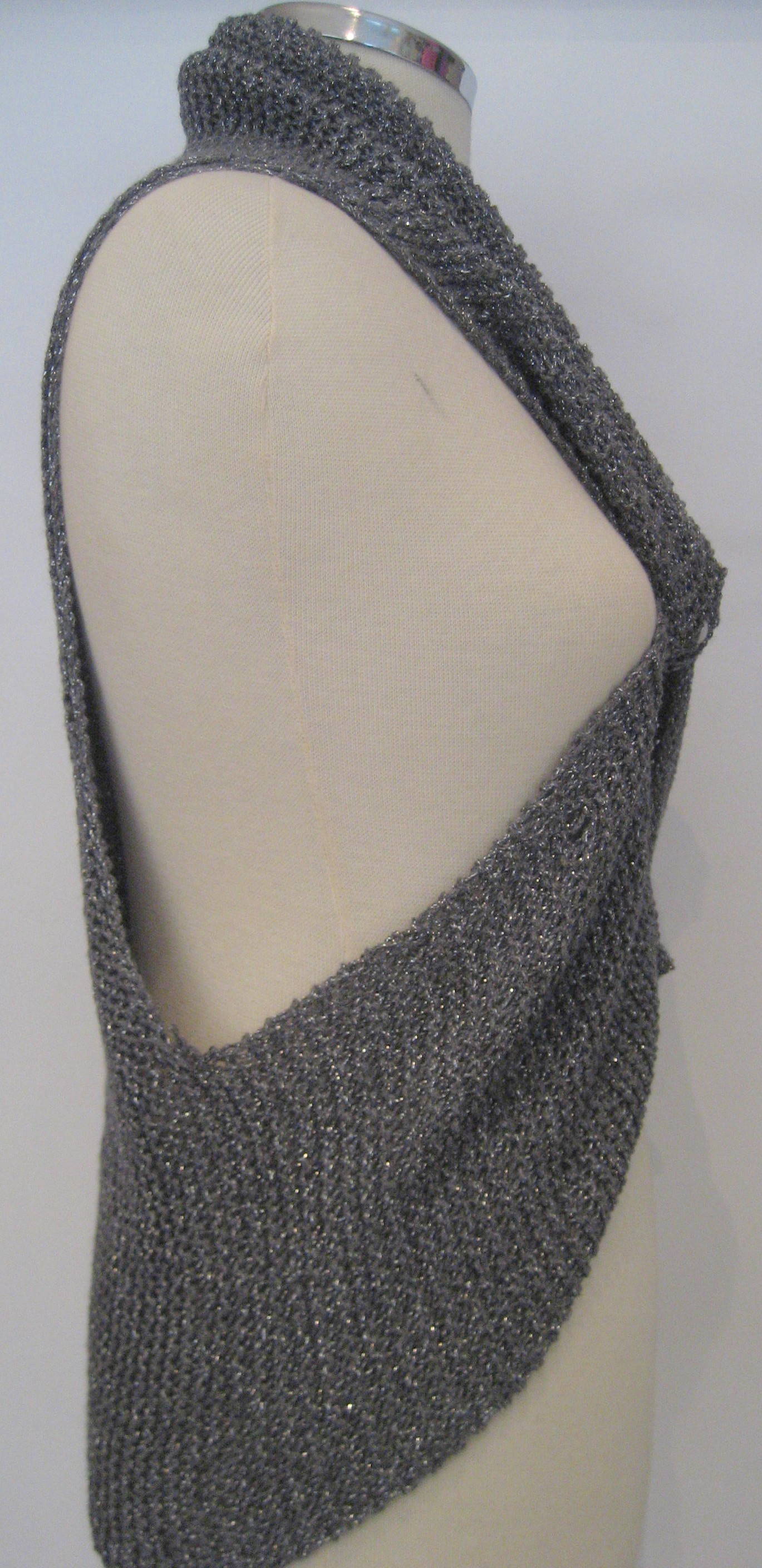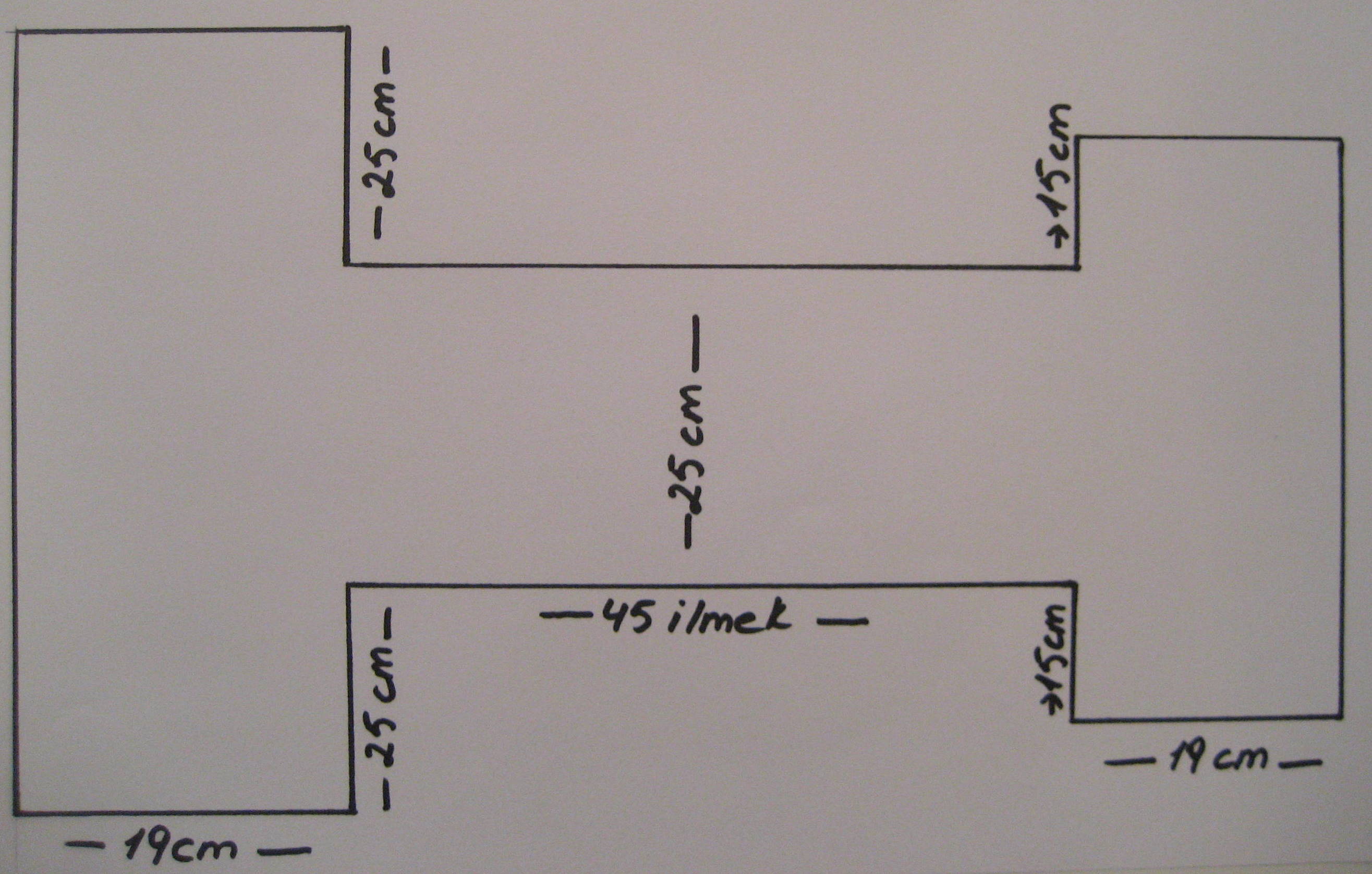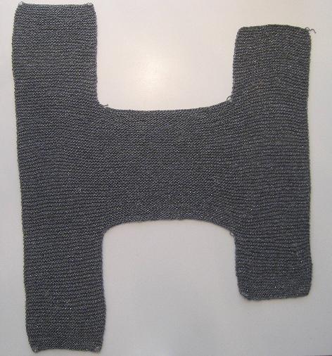 Yapılışı:yeleğimize ondokuz cm. başlanır, 25 cm örülür.Başka bir şişte 19 cm. başlanır.on beş cm. örülür.Araya 45 ilmek atılıp iki parça aynı şişe takılır, yirmi beş cm. örülür.Aradaki 45 ilmek kesilir.Sol parça 25 cm. örülür.Sağ parçaonbeş cm. örülüp, kapatılır.Sol parçanın dört köşesine çıtçıt dikilir.Sağ parça 2. fotoğrafta görüldüğü gibi dikilerek birleştirilir.