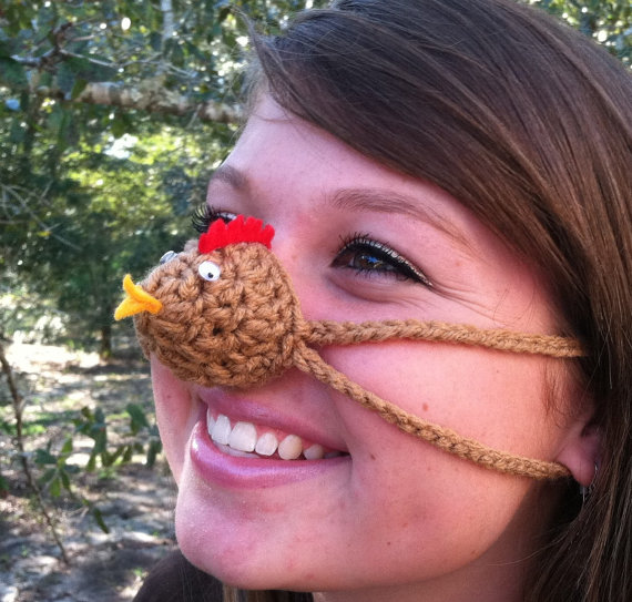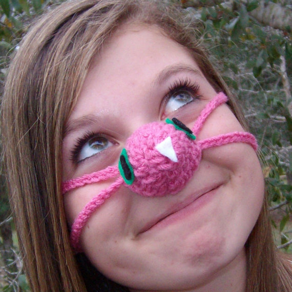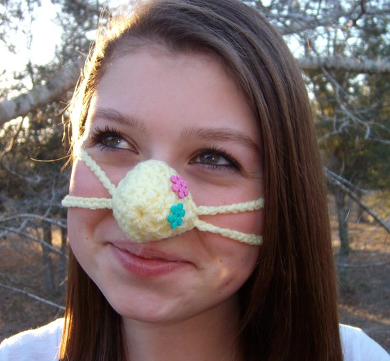 Gördüm ,gördüm de ben bu kadar tuhaf bir örgü çılgınlığı görmedim…(=…Gerçi hepimizin içinden burunlarımız soğuktan donma aşamasına geldiğinde , keşke burnumuzu soğuktan koruyacak burunluklar olsa diye geçmiştir ancak bu temenniyi hayata geçirmek gerçekte çılgınca bir görüntü çıkarmış ortaya…(=