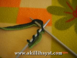 -Bu arada ip ördüğünüz rengin 3 farklı tonundan oluşuyor.Modelimiz yeşil renkli fırfırlı .ple örülmüş.O nedenle yeşil renk üzerinden anlatayım anlatacaklarımı…(=